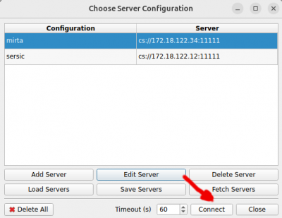 - Connection URL: cs://milan01:11111